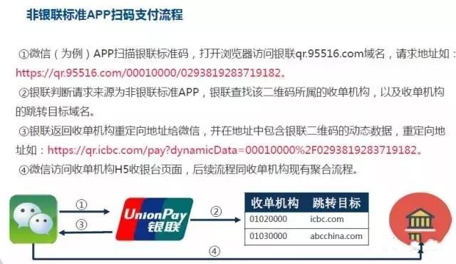 银联聚合码(上图左侧),是收单机构按照银联标准生成的二维码,支持银联标准二维码APP扫码支付。各位可以使用银联钱包、各大银行、京东等支持银联标准二维码的APP“扫一扫”功能,进行扫码支付(上图左侧),同时也支持微信、支付宝进行扫码支付(可直接在微信里识别二维码)。