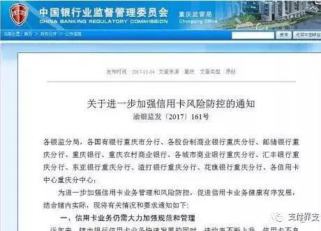 日前重庆银监局发布《关于进一步加强信用卡风险防控的通知》(下称《通知》),(原文请见正文)要求信用卡业务仍需大力加强规范和管理,将从发卡,交易与逾期管理多方面进行管控!