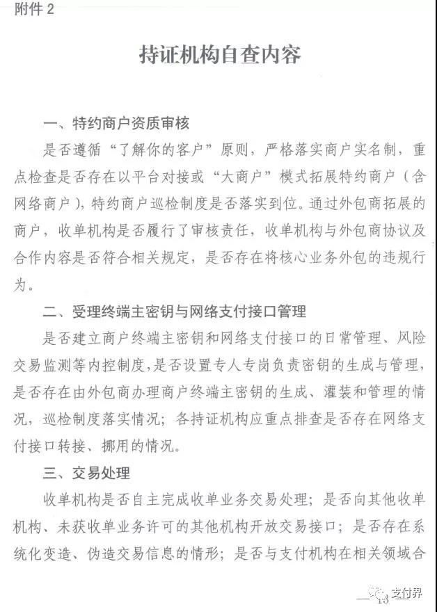 各银行、支付公司等均将按要求开展自查自纠!这是一场全方位的打击,从交易、接口、资金、结算等等涉及支付全流程!无证支付机构,二清机构将遭遇有史以来最严厉的封杀!目前部分市场上火爆的部分无卡支付产品或将被陆续封停!